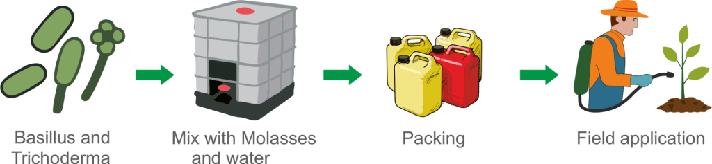 Micro-organisms – A specialized mix of Bacillus, Trichoderma and molasses that protects the roots and regenerates the root environment.
